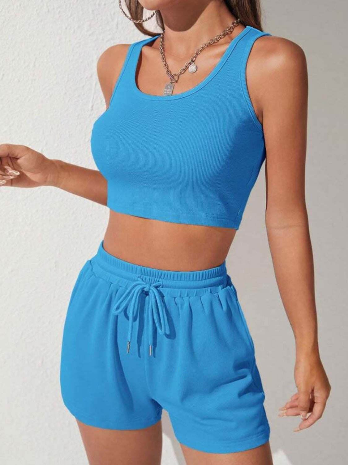 Scoop Neck Wide Strap Top and Drawstring Shorts Set